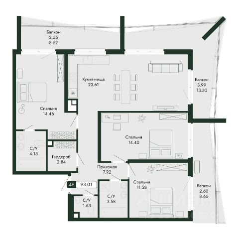 Продаётся 4-комнатная квартира в строящемся доме (дом 2), срок сдачи: III-кв. 2027, общей площадью 83.61 кв.м., на 6 этаже. "Парковая Резиденция" - уникальный проект на Южном берегу Крыма, в г. Алушта, в котором близость к морю сочетается с соседством с вечнозелёным краснокнижным дендропарком с экзотическими реликтовыми деревьями и растениями. Это жизнь в курортной атмосфере, в 5 минутах ходьбы от пляжа, но при этом в центре города со всей его развитой инфраструктурой. Деликатно и гармонично вписанный в окружающий ландшафт, комплекс бизнес-класса "Парковая Резиденция" станет архитектурным украшением Алушты. Его по достоинству оценят ценители приватности и комфорта. - 5,5 га территория проекта - 3 мини-квартала, названия которых отражают растительность территории - Можжевеловый, Эвкалиптовый, Миндальный. - 19 корпусов - 7-14 этажей ОТДЫХАЙТЕ, РАССЛАБЛЯЙТЕСЬ, ЗАРЯЖАЙТЕСЬ - Крытые и открытые бассейны - Инфраструктура для детей - Спортивные кластеры - Территории отдыха с вертикальным озеленением - Прогулочные зоны c сетью извилистых дорожек - Собственный торговый променад - Приватная безопасная территория НАСЛАЖДАЙТЕСЬ НЕВЕРОЯТНЫМ КОМФОРТОМ "Парковая Резиденция" - это новый уровень комфорта. Сервисная инфраструктура продумана так, чтобы резиденты комплекса в считанные минуты могли реализовать свои желания будь то бытовые вопросы или досуг. Рестораны с верандами, кафе, салоны красоты, аптеки, пункты выдачи, пекарни, барбершопы, зоомагазины, цветочные лавки, спортивные студии, детский образовательный центр - всё находится в собственном торговом променаде.