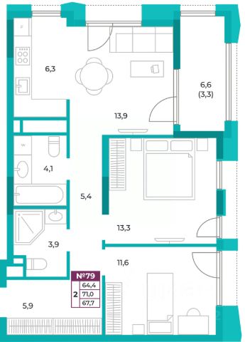 • ✅ Объект наибольшей площади: 116,6 м²
