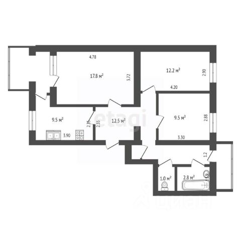 Трехкомнатная квартира 95.3 м2, на цокольном этаже двухэтажного дома. Объект расположен по адресу : Респ Крым, г Алушта, улица 60 лет СССР, д 10.