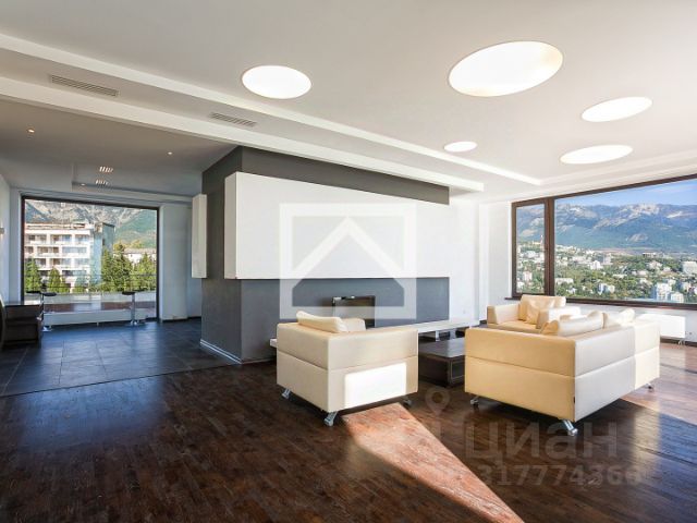 Панорамные окна от пола до потолка. Благодаря такому остеклению солнечные лучи наполняют пространство светом, а красивый вид на живописный природный и архитектурный ландшафт Ялты сделает ваш интерьер уникальным.