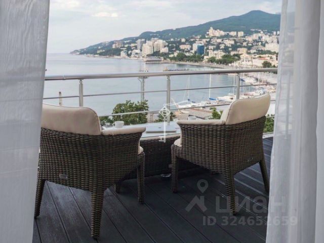 Продаётся светлая 4-комнатная квартира с дизайнерской отделкой и мебелью из Италии с панорамным видом на море, горы и город в ЖК "Вершина успеха" в 800 метрах от набережной Ялты.