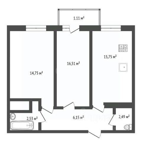Общая площадь квартиры 31,3 кв.м, включает в себя просторную прихожую, совмещенный санузел, удобную комнату и просторную кухню с выходом на балкон.