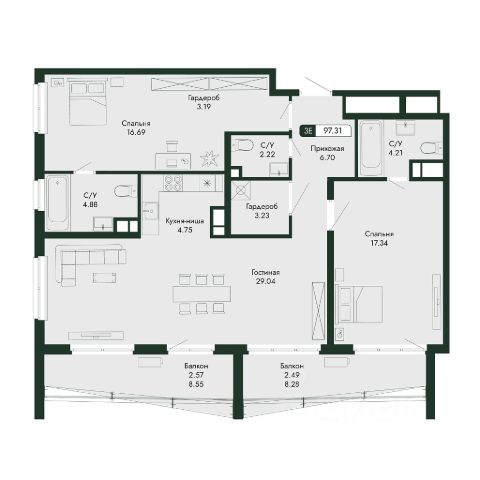 Продаётся 4-комнатная квартира в строящемся доме (дом 2), срок сдачи: III-кв. 2027, общей площадью 83.65 кв.м., на 5 этаже. "Парковая Резиденция" - уникальный проект на Южном берегу Крыма, в г. Алушта, в котором близость к морю сочетается с соседством с вечнозелёным краснокнижным дендропарком с экзотическими реликтовыми деревьями и растениями. Это жизнь в курортной атмосфере, в 5 минутах ходьбы от пляжа, но при этом в центре города со всей его развитой инфраструктурой. Деликатно и гармонично вписанный в окружающий ландшафт, комплекс бизнес-класса "Парковая Резиденция" станет архитектурным украшением Алушты. Его по достоинству оценят ценители приватности и комфорта. - 5,5 га территория проекта - 3 мини-квартала, названия которых отражают растительность территории - Можжевеловый, Эвкалиптовый, Миндальный. - 19 корпусов - 7-14 этажей ОТДЫХАЙТЕ, РАССЛАБЛЯЙТЕСЬ, ЗАРЯЖАЙТЕСЬ - Крытые и открытые бассейны - Инфраструктура для детей - Спортивные кластеры - Территории отдыха с вертикальным озеленением - Прогулочные зоны c сетью извилистых дорожек - Собственный торговый променад - Приватная безопасная территория НАСЛАЖДАЙТЕСЬ НЕВЕРОЯТНЫМ КОМФОРТОМ "Парковая Резиденция" - это новый уровень комфорта. Сервисная инфраструктура продумана так, чтобы резиденты комплекса в считанные минуты могли реализовать свои желания будь то бытовые вопросы или досуг. Рестораны с верандами, кафе, салоны красоты, аптеки, пункты выдачи, пекарни, барбершопы, зоомагазины, цветочные лавки, спортивные студии, детский образовательный центр - всё находится в собственном торговом променаде.