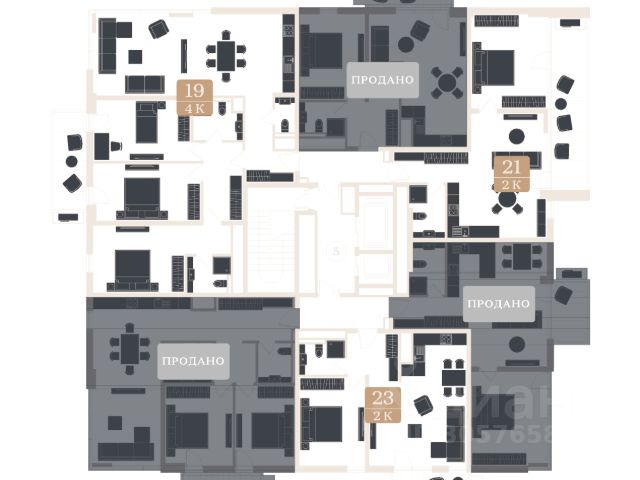 комнаты 26,8 кв. м., 18,6 кв. м., 22,9 кв. м., 7,8 кв. м