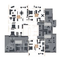 Квартира оборудована временными перегородками из гипса-картона для косметических кабинетов в количестве 6-ти комнат, в каждой из которой подведена вода.