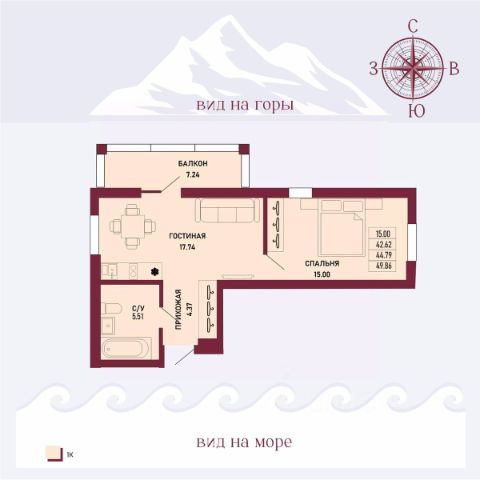 Просторная однокомнатная квартира с изолированной спальней, окна квартиры выходят на могущественные горы и вечнозелёный Ялтинский лес. Квартира видовая, расположена на 7 этаже жилого комплекса "Бакунинский".