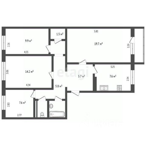 комнаты 26,8 кв. м., 18,6 кв. м., 22,9 кв. м., 7,8 кв. м