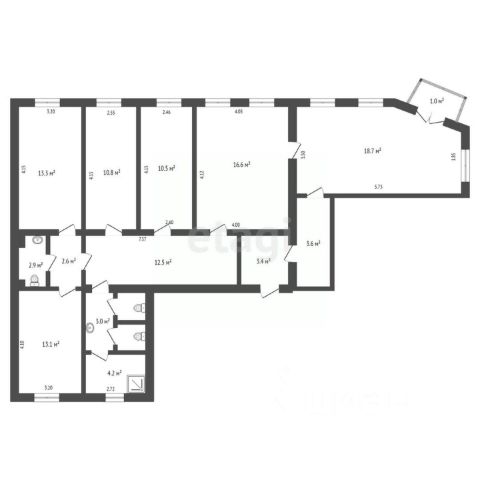Квартира площадью 161,5 м², расположена на 2 этаже 9-этажного дома.