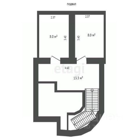 Два полноценных санузла по 8 м² каждый — один из которых может быть оборудован под хозяйственную зону.