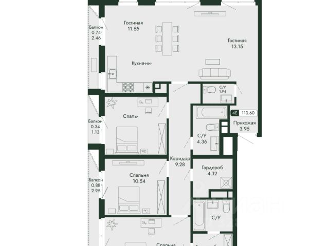 Продаётся 5-комнатная квартира в строящемся доме (дом 2), срок сдачи: III-кв. 2027, общей площадью 110.19 кв.м., на 6 этаже. "Парковая Резиденция" - уникальный проект на Южном берегу Крыма, в г. Алушта, в котором близость к морю сочетается с соседством с вечнозелёным краснокнижным дендропарком с экзотическими реликтовыми деревьями и растениями. Это жизнь в курортной атмосфере, в 5 минутах ходьбы от пляжа, но при этом в центре города со всей его развитой инфраструктурой. Деликатно и гармонично вписанный в окружающий ландшафт, комплекс бизнес-класса "Парковая Резиденция" станет архитектурным украшением Алушты. Его по достоинству оценят ценители приватности и комфорта. - 5,5 га территория проекта - 3 мини-квартала, названия которых отражают растительность территории - Можжевеловый, Эвкалиптовый, Миндальный. - 19 корпусов - 7-14 этажей ОТДЫХАЙТЕ, РАССЛАБЛЯЙТЕСЬ, ЗАРЯЖАЙТЕСЬ - Крытые и открытые бассейны - Инфраструктура для детей - Спортивные кластеры - Территории отдыха с вертикальным озеленением - Прогулочные зоны c сетью извилистых дорожек - Собственный торговый променад - Приватная безопасная территория НАСЛАЖДАЙТЕСЬ НЕВЕРОЯТНЫМ КОМФОРТОМ "Парковая Резиденция" - это новый уровень комфорта. Сервисная инфраструктура продумана так, чтобы резиденты комплекса в считанные минуты могли реализовать свои желания будь то бытовые вопросы или досуг. Рестораны с верандами, кафе, салоны красоты, аптеки, пункты выдачи, пекарни, барбершопы, зоомагазины, цветочные лавки, спортивные студии, детский образовательный центр - всё находится в собственном торговом променаде.