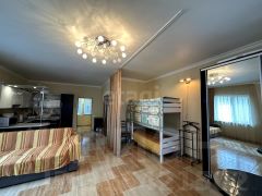 Просторные апартаменты с удобной планировкой в 31 м.кв жилья. При входе в апартаменты вы попадаете в просторный гостиничный коридор, где расположен совмещенный санузел, далее кухня - столовая со своей зоной отдыха. Следующим шагом из кухни, вы можете переместится в комфортную жилую комнату где расположено все самое необходимое для вашего комфортного пребывания в данных апартаментах. Из окон апартаментов открывается вид на город горы и одну из центральных улиц города, ведущую к центральной набережной Алушты. Вся мебель и встроенная техника остается новому собственнику. Хороший вариант для сезонного отдыха и постоянного проживания с возможностью сдачи в аренду.