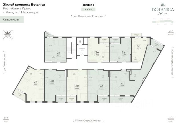 Жилой комплекс бизнес-класса располагается в престижном районе Массандры. Комплекс находится на возвышенности, поэтому из всех окон квартир открываются захватывающие панорамы на морскую бухту, горные вершины и заповедный лесной массив. Расположенный рядом с Ялтинским горно-лесным заповедником, ЖК будто становится его естественным продолжением.