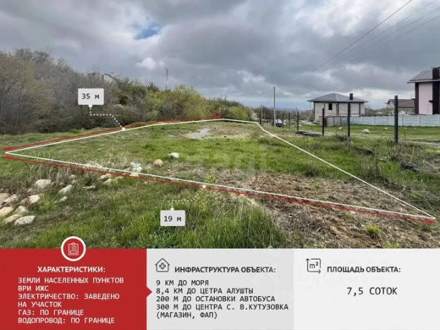 Лучший вид море с любой точки участка. В продаже видовой (360 градусов вид на море, горы, Алушту) земельный участок в экологичном месте. Площадь земельного участка 8 соток. Участок расположен в с. Изобильное, в ближайших окрестностях города-курорта Алушта. Отличная локация для строительства жилого дома и постоянного проживания. Удобный подъезд прямо к участку. Лечебный горный воздух. Тишина, спокойствие и умиротворение этого места не оставят Вас равнодушным. Электричество столб возле участка. Газ возле участка. Вода по границе участка. Документы РФ, один собственник, без обременения, ИЖС, быстрый выход на сделку. Земли поселений для индивидуального жилищного строительства. Село Изобильное расположено на Южном берегу Крыма. Расстояние до Алушты около 5 километров (по шоссе) к северу, ближайшая железнодорожная станция — Симферополь-Пассажирский — примерно в 43 километрах. Транспортное сообщение осуществляется по региональной автодороге, соединяющей трассу Симферополь — Ялта с шоссе Алушта — Судак. В селе: школа, детский сад, ФАП, магазины, аптека, рынок. Пишите или звоните! С большим удовольствием ответим на все вопросы и организуем персональную презентацию в любое удобное вам время! Компания "ЭТАЖИ" является официальным партнером всех ведущих банков: РНКБ, ГЕНбанк, банк России, Промсвязьбанк, СБЕР. У наших клиентов, есть возможность направить пакет документов на получение ОДОБРЕНИЯ ипотеки прямо из нашего офиса по всем банкам! Юристы компании "ЭТАЖИ" предоставляют полное сопровождение сделки. Электронная регистрация сделки, поможет Вам ускорить процесс переоформления и сэкономить Ваши денежные средства. Компания "ЭТАЖИ" - лучшее решение для покупателей! Самую большую базу недвижимости, Вы можете найти на нашем официальном сайте! код объекта: 5795663 МЫ ГАРАНТИРУЕМ ФИНАНСОВУЮ БЕЗОПАСНОСТЬ ДЛЯ НАШИХ КЛИЕНТОВ. Полное юридическое сопровождение сделки. Высокий шанс одобрения ипотеки. Звоните, с удовольствием ответим на ваши вопросы! Код пользователя: 159388 Номер в базе: 5795663