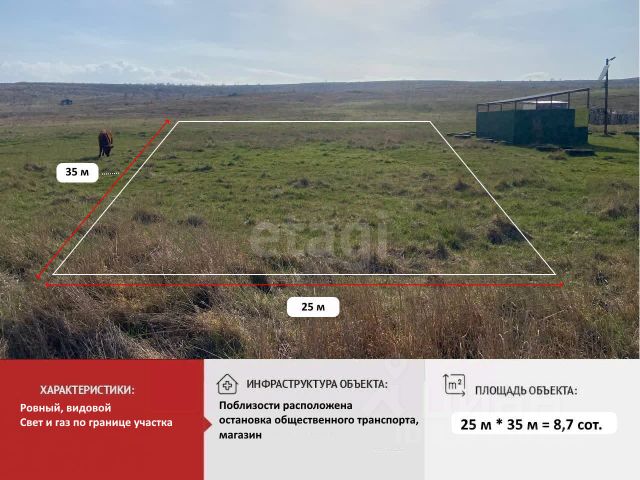 В продаже участок ровной, прямоугольной формы, видовой! Участок 8.75 соток - ИЖС, 15 минут до г Симферополь.