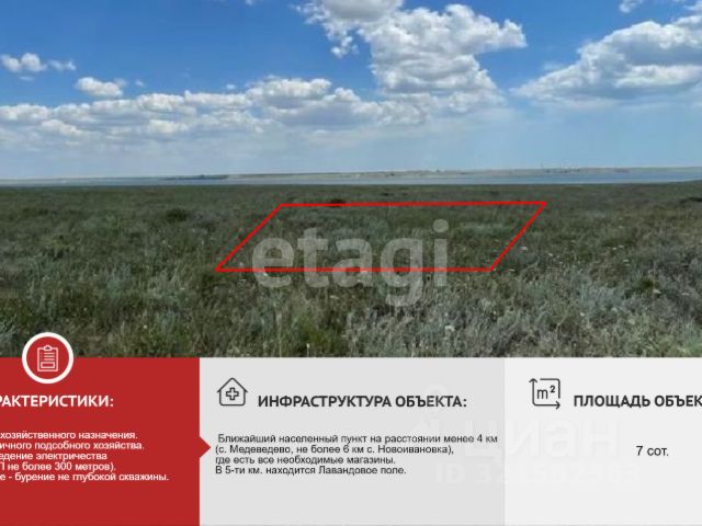 Продается участок для ЛКХ, прямоугольной формы, площадью 1 га, расположенный за пределами Новоивановского сельского поселения Черноморского района Республики Крым. Есть возможность подключения к линии электропередач на расстоянии 150 м. Часть участка можно использовать под строительство некапитального строения - дачи, с которой будет открываться красивый вид на озеро Донузлав! Чистый воздух, тишина и красота крымской степи создают комфортные условия для приятного отдыха тем, кто устал от городской суеты!!! До береговой линии 900 м. Через залив открывается красивый вид на пгт. Новоозерное. На расстоянии 5 км находится с. Новоивановка, куда ведёт грейдированная насыпная дорога и где всегда можно купить домашнее мясо птицы, крольчатину, перепелов, свинину, говядину, баранину, молоко, сметану, творог, яйца, овощи и фрукты! А также ароматный мед из степного разнотравья. Полноценное оздоровление взрослых и детей обеспечено!!! На знаменитом озере Донузлав отличное место для уединенной рыбалки, где хорошо ловится ставрида, барабуля, бычок, окунь, морской карась, глось, лоричка, камидка, кафель, лобань, черноморская сельдь, креветка, крабы, мидии. На расстоянии 900 метров от участка ЛКХ располагается самая крупная устричная и мидийная плантация в России. Номер объекта: #1/538338/17283 Продается участок под дачу в селе Новоивановка Черноморского района.