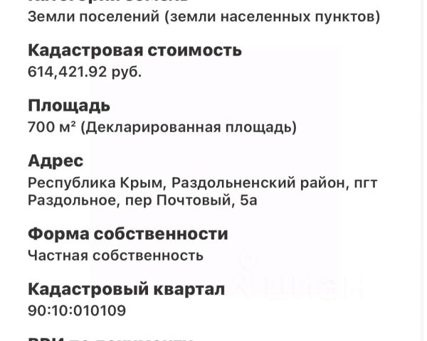 Продается земельный участок в Крыму, пгт Раздольное, Республика Крым, площадь которого составляет 7 соток. Участок подходит под семейную ипотеку. Рассмотрим любую форму расчета. Раздольненский район в Крыму расположен недалеко от моря. Это Расстояние можно преодолеть за 15 минут. Бакальское озеро соленое, пляж возле него песчаный, имеет пологий спуск. Между Бакальским озером и морем расположилась Бакальская коса, протяженность которой составляет около 12 км. Параметры участка: МЕЖЕВАНИЕ СДЕЛАНО. Площадь, кв.м - 700 Категория земель: Земли населенных пунктов Вид разрешенного использования: Для индивидуального жилищного строительства. Земельный участок ровный, прямоугольной формы, расположен на ул. Зеленой поселка. Все коммуникации включая газ, по границе участка. Развитая инфраструктура, школа, детский сад, рынки, магазины все это в пешей доступности. Раздольное является районным центром Раздольненского района. Рядом с ним расположены села Кропоткино, Червоное, Ботаническое, Сенокосное, Молочное и Чернышево. До Симферополя от Раздольного 130 км, а до Евпатории, ближайшего крупного крымского курорта, — 75 км. Из соседних мини-курортов на Черном море стоит отметить Портовое (в 10 км) и Стерегущее (в 25 км), которые славятся чистым морем и песочными пляжами. Номер объекта: #1/548081/23345 Продается участок под дачу в поселке городского типа Раздольное республики Крым.