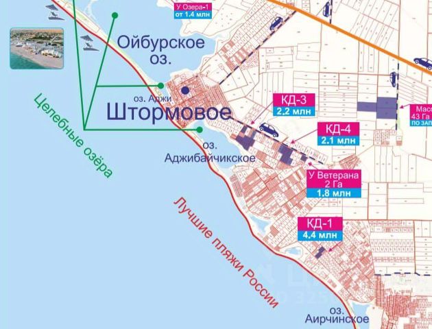 Участок находится всего в 700 метрах от дороги и в 1000 метрах от ПГТ Новоозерное, всего в 5 минутах пешком до прекрасного Донузлавского залива, с потрясающим видом на его просторы. Ширина залива в этом месте составляет 1,8 км, а другой берег остается вдали от глаз, обеспечивая атмосферу уединения. Это идеальное место для строительства вашего загородного дома для сезонного отдыха или круглогодичного проживания. Участок также подходит для организации гостиничных номеров или является раем для любителей кайтинга и круглогодичной рыбалки. Вам не потребуется искать место для вашей яхты — здесь вы сможете организовать собственную стоянку. Всего в 15 минутах пешком расположен современный благоустроенный городской пляж в Новоозерном. В 6 минутах езды на автомобиле находится коса Беляус, известная как "Крымские Мальдивы". А всего в 6 минутах на машине — легендарный черноморский пляж Казантип, славящийся своей чистейшей прозрачной водой и белоснежным песком.