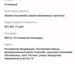 Вашему вниманию предлагается участок 6 соток СНТ в Уютном, отличное расположение !!! Все что необходимо для комфортной жизни в шаговой доступности : школа, детский сад, магазины, аптеки, остановки маршрутного транспорта, спортплощадки, ледовый дворец им. Авербуха Свет по границе участка, для воды нужно будет копать скважину ,газ будет в ближайшее время ! Успейте купить ,цены на недвижимость в Крыму только растут!!!