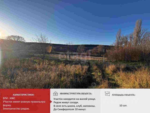 Участок расположен в живописной долине с. Донское, паралельно ул. Солнечная, возле реки Бештерек и соснового леса. Село Донское- центральная усадьба Донского сельского поселения, перспективное и живописное село! В селе чистый воздух, вокруг сосновый лес, горы. В селе дет. сад., школа, магазины,поликлиника, завод по производству сип панелей, СТО, база отдыха "Гартенталь" , ходит общественный транспорт. До г. Симферополь- 5-6 км. Близость к трассе Таврида, с удобными развязками, позволяет быстро передвигаться в любую часть Крыма. В селе по улицам проводится центральное водоснабжение, газ по плану до 2025 г.