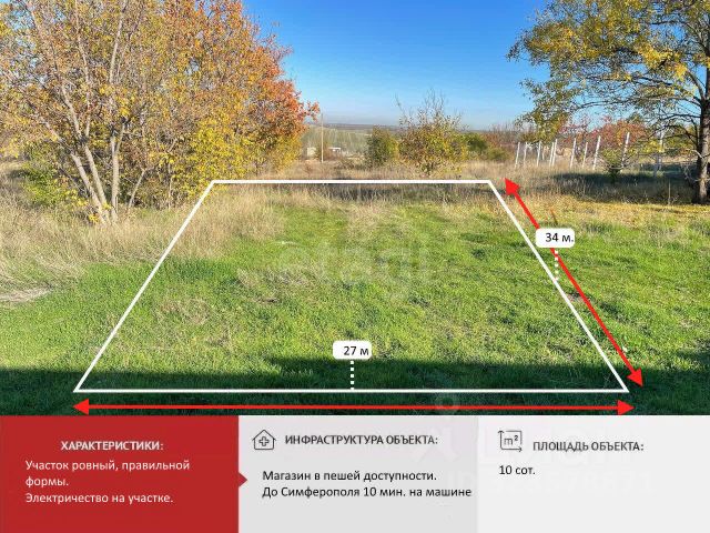 Продается прекрасный участок для вашего будущего дома! Планируете строительство дома своей мечты в черте города? Предлагаем вам обратить внимание на данный участок в черте города. В непосредственной близости от города. На автомобиле 5 мин. езды по асфальтированной дороге. Основные преимущества: Идеальная прямоугольная форма (33*30 метров.). Что позволяет максимально эффективно использовать площадь для строительства дома. Коммуникации по границе: Все необходимое для комфортной жизни уже рядом! Вода и электричество подведены по границе участка, что позволит вам быстро и без лишних хлопот подключиться к сетям. Удобное расположение и транспортная развязка. Участок находится в непосредственной близости от города (5 км.). Удобная транспортная развязка которая выходит. На массив ведут 2 отдельные асфальтированный дороги одна с выходом на московскую трассу, вторая с выходом на городскую объездную и город Симферополь. Перспективы населенного пункта: В 2026 году планируется газификация поселка, что повлечет рост цен на недвижимость в данном районе. Плюс на соседнее поле уже распланирована многоэтажная застройка, что фактически приведет к тому что массив окажется в черте города. Этот участок прекрасная возможность как для строительства дома вашей мечты так и инвестиции ваших свободных финансовых средств. Цены на недвижимость постоянно растут по этому не откладывайте принятие решения в долгий ящик. Звоните прямо сейчас, чтобы узнать подробности и договориться о просмотре! Номер объекта: 10735367 МЫ ГАРАНТИРУЕМ ФИНАНСОВУЮ БЕЗОПАСНОСТЬ ДЛЯ НАШИХ КЛИЕНТОВ. Полное юридическое сопровождение сделки. Высокий шанс одобрения ипотеки. Звоните, с удовольствием ответим на ваши вопросы! Код пользователя: 194981 Номер в базе: 10735367 Продажа участка строго для дачи.