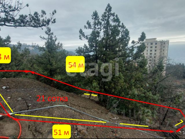 Участок 20 соток (по документам, а фактически 22,8 с возможностью расширения), сухой, с легким уклоном, в окружении леса. Не имеет соседей по границе, что является большим преимуществом. Участок исторически сложившийся, более 40 лет проживают члены одной семьи. Электричество заведено в дом, вода от поселкового водопровода из горных родников, асфальтированная дорога до участка. Территория ухоженная, много взрослых плодовых деревьев (яблони, груши, айва, инжир, кизил, грецкий орех и др.), смородина, малина, клубника, виноград, разработанные грядки, цветники. Имеется гараж и хоз. постройки. Достаточно места для строительства нового дома. Поселок расположен на границе Ялтинского горно-лесного заповедника, на высоте 400 м над уровнем моря, чистейший воздух, пение птиц, тишина круглый год. Открываются прекрасные виды на гряду Крымских гор и окрестности.