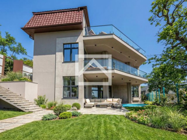 Фасады выполнены из натурального камня и облицованы турецким гранитом и мрамором, элементы декора и кованые решётки на окнах изготовлены из художественной ковки. Архитектура дополнена изящными балконами, арочными проёмами и эффектной входной группой с каменной лестницей, создавая атмосферу респектабельности и статуса.