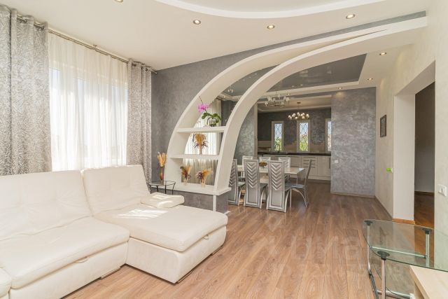 Светлый, просторный жилой дом в престижном районе г. Бахчисарай Жилой дом - 357 м2. на участке 7 соток. Дом построен из пенополистрирольных блоков производства Германия. (Термодом). Крыша натуральная черепица производство Польша, термо стеклопакеты, двери все в доме по индивидуальному заказу из натурального дерева с каленым стекло, входные двери бронированные. Коммуникации : Газ, свет-3 фазы, на каждом этаже отдельный блок автоматов, Водоснабжение центральное, очистная установка на вводе, септик -2 слива. Котельная: Газовый котёл, электрический котёл на 25 кВт. Цокольный этаж: Отдельный вход, спальня, кухня, санузел. Просторный гараж, . 1-ый этаж: Кухня- студия, гостиная с выходом на балкон, жилая комната с отдельным санузлом и выходом на террасу , прачечная с сушилкой встроенная в вертикальную стену, санузел. 2-ой этаж: 3 спальни детских, 1 спальня взрослая с выходом на балкон, кабинет, санузел с душевой кабиной и ванной с видом на озеро. Лестница на просторный чердак с вентиляционными окнами. Во дворе есть навес на машину. Большая мангальная зона с защитой от солнца, с кухней, с водой, туалетом. Двор облагорожен и озеленён редкими хвойными деревьями. В шаговой доступности новый детский сад, магазины, аптека. Для солидных людей вдали от городского шума и суеты. Торг уместен. Коттедж, кол во спален - 3..