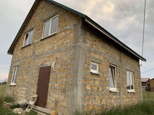 Дом в настоящее время реконструируется, готовность 80%, на первом этаже Г-образная комната площадью 39 м2, кухня - 10 м2, на втором этаже: Г-образная комната площадью 39 м2, и комната 20 м2, есть чердак и подвал, у входа - навес-оранжерея, рядом высажен виноград. В доме санузел и раковина, коммуникации заведены, установлена бочка для воды возле дома. По кадастру дом 53,5м2, как до реконструкции, обшит мягкой черепицей, внутри первого этажа частично стены обшиты террасной доской, везде дерево.