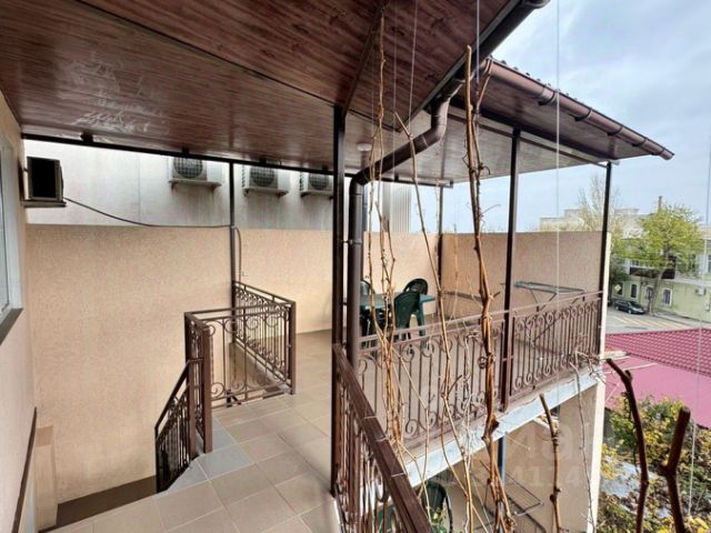 Трёхэтажное здание 165 м2. Материал камень-ракушечник, кровля - металлочерепица, здание оштукатурено снаружи, внутри выложено плиткой из керамогранита на полу и на стенах.