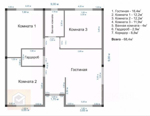 Дом состоит из двух этажей, 6 смежно-изолированных комнат, кухни 16.5 м.кв.,прихожей, гостевой, двух коридоров, гардеробной, раздельного санузла, туалета и котельной.