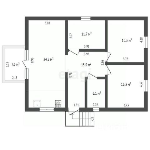 Капитальный дом площадью 139,67м2 с террасой и крыльцом построен на участке ИЖС (6,4 сотки). Территории достаточно, чтобы расположить баню, купель, бассейн, припарковать несколько авто.