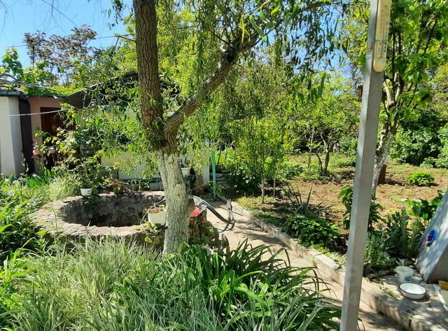 Участок прямоугольной формы, высажены кипарисы и ели. Во дворе система дренажа, мощение тротуарной плиткой.