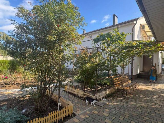 Пpодается хороший жилой дом в приморском поселке Молочное. В доме два этажа. Построен из камня ракушняк, год постройки 2009. Общая площадь дома 222,9 кв.м. . На первом этаже находятся 2 спальни 13.5 и 16.4 кв.м., гостинная комната 29.5 кв.м., кухня - столовая 23.8 кв.м., сан. узел с ванной 7 кв.м., прихожая 10.3 кв.м. На второй этаж ведет удобная деревянная лестница. На втором этаже расположены 3 спальни, в каждой есть свой санузел и душ, кондиционер; гардеробная комната. С двух спален есть выход на террасу. Второй этаж можно сдавать отдыхающим, на него есть отдельный вход со двора. В доме проведено автономное газовое отопление ( двухконтурный котел ВАХI), теплый водяной пол на кухне. Канализация- септик. Водоснабжение центральное. На участке имеется капитальные гараж с автоматическими воротами, погреб, беседка, летняя кухня с газовой плитой и колонкой и оборудованное место для мангала. Так же есть отдельный душ и санузел. Полноценный однокомнатный номер со всеми удобствами. На участке много плодовых деревьев (гранат, слива, груша, вишня, персики,черешня, инжир и т.д.), цветы, розы. Документы РФ. Готовы к продаже. В поселке есть школа, поселковый совет, магазины, транспорт. До города Евпатория 8 км. До песчаного пляжа 1,5 км.