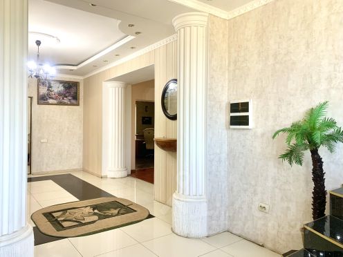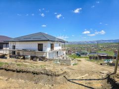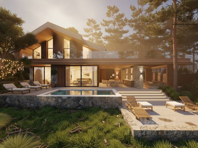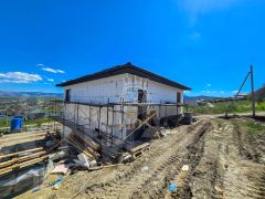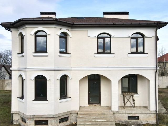 Основное здание жилого дома общей площадью 396,7 м², 3-этажное. Здание высочайшего качества строительства: железобетонно-каркасная конструкция, наружные стены блочные 40 см (ракушечник). Фасад - базальтовая плита 100 мм, отштукатурен и покрыт травертином. Высота потолков 3,2 м. Высота цоколя предусматривает возможные максимальные зимние осадки и составляет 1,2 м. В доме установлены дорогие качественные, с 7-ми и 12-ти камерными стеклопакетами окна REHAU с энергосберегающими стеклами и с усиленным армированием, часть из которых являются панорамными. Предусмотрен просторный обслуживаемый чердак, несущая стропильная система - металлокаркас. Кровля мягкая, утепленная. Свободная планировка дома. Проектные планировочные решения: функциональный подвал с инженерными коммуникациями, прачечной, сушильной и гладильной комнатами, оружейной комнатой и винным залом; первый этаж предусматривает два холла 4,7 м² (тамбур) и 6,1 м² (основной), просторную сезонную гардеробную на входе в дом 6,7 м², кабинет 18,6 м², гостевой и общий совмещенный санузел 6,5 м², а также большой зал 71 м², совмещающий зону кухни, зону столовой и зону отдыха с камином (с отдельным выходом на участок); второй этаж предусматривает просторный холл - 6,1 м², санузел для двух спален - 7,2 м², спальня - 21,3 м², спальня - 19 м², мастер спальня - 43,3 м² с отдельным санузлом - 12,5 м² и гардеробной - 12 м². Внутренняя отделка дома не проводилась. Дизайн проект выполнен и может быть представлен покупателю.Гостевой 2-х этажный дом с баней общей площадью 105,8 м², выполнен из сруба (лиственница Красноярская, диаметр 200). Планировочные решения: первый этаж: терраса 4,4 м², тамбур 2,5 м², комната отдыха 20 м², совмещенная с кухней 9 м², парная 6,8 м² и помывочная комната с санузлом 7,6 м², на первом этаже установлены водяные тёплые полы; на втором этаже две спальни 25,4 м² и 12,5 м², санузел 2,4 м² и балкон 4,4 м², пол чистовой деревянный. По дому разведена электрика, водопровод и канализация, стеклопакеты REHAU (Германия), как и в основном доме, с энергосберегающими технологиями. Дом после усадки, обработан, прошнурован, произведены внутренняя и внешняя обработка швов, покрыт специальной пропиткой внутри и снаружи, кровля мягкая, утепленная.