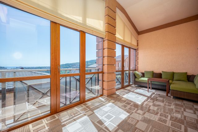 Предлагается к покупке новый дом в закрытом коттеджном поселке, в городе Ялта. Двухэтажный дом общей площадью 350 м2 расположен на участке 3,2 сотки. На первом этаже расположены просторная кухня-гостиная, гостевая спальня, гостевой санузел, кладовая, прачечная и открытая терраса с зоной для отдыха. Планировка второго этажа включает в себя три спальни (две из которых оборудованы гардеробными, а одна из спален имеет свою застекленную террасу, где можно оборудовать кабинет), большой санузел (установлены ванная и душевая), холл. Практически из всех помещений второго этажа открывается прекрасный вид на море и Ялту. Со второго этажа выход на большую открытую видовую террасу с зоной для барбекю (есть тандыр) и садом. В доме выполнен дизайнерский ремонт, с использованием только высококачественных материалов. Полностью укомплектован всей необходимой мебелью и техникой. Все коммуникации городские (электричество, газ, вода и канализация). Установлен двухконтурный газовый котел, который обеспечивает подачу горячей воды и отопления, на первом этаже установлены теплые полы и радиаторы, на втором этаже радиаторы и теплые полы в санузлах. В дом заведено 380 кВт, установлены стабилизаторы напряжения электричества, что обеспечивает сохранность техники в доме. Установлены два резервных аккумулятора, которые в случае отключения электричества обеспечивают дому подачу электроэнергии в течении 5 часов. Придомовая территория разбита на два уровня. На первом уровне расположены гараж, место для парковки авто и дополнительное место для парковки (которое можно переоборудовать в сад), открытая терраса. На втором уровне придомовой территории расположили сад, зону для отдыха и техническое помещение. Дом расположен в элитном коттеджном поселке со своей инфраструктурой на территории (кафе, детская и спортивная площадки, два бассейна). При въезде расположен пункт охраны, по всей территории ведется видеонаблюдение. Создано ТСН. Удобный выезд на Южно-Бережное шоссе позволит попасть в любую точку города избегая пробок, до Центра Ялты можно доехать минут за 5, до ближайшего пляжа 7 минут езды. Прекрасный вариант для ценителей комфортной загородной жизни.