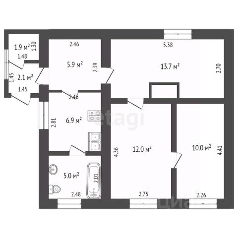 Планировка: три жилые комнаты, кухня, санузел, коридор