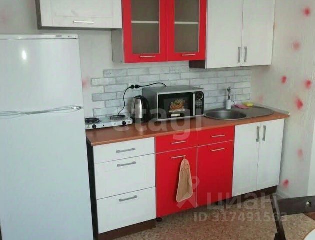 На первом этаже комната-студия (две односпальные кровати, полуторный диван, шкаф, сервант, кухонная зона, холодильник, микроволновая печь, обеденный стол, бойлер, кондиционер, санузел, интернет), веранда (деревянный стол, две скамьи, мангал). На верхние этажи ведет деревянная лестница с металлическим каркасом.
