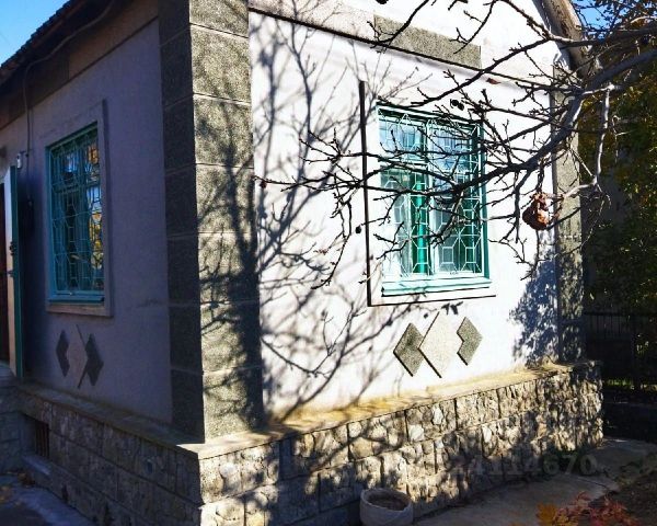 Первый дом,основной. С правом прописки ( это большой плюс), собственность. Площадь- 67,2 м2 Фундамент - скала сухой, в любое время года температура постоянная,хорошо для приготовления и хранения вина . Стены камень-ракушечник хорошо сохраняет температуру летом-прохладно, зимой тепло. 1 этаж- прихожая, комната-камин ,шкаф, большая кровать, стол ,ТВ. 2-й этаж -две кровати односпальные.