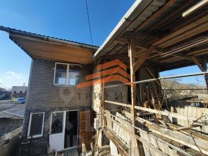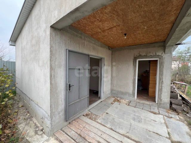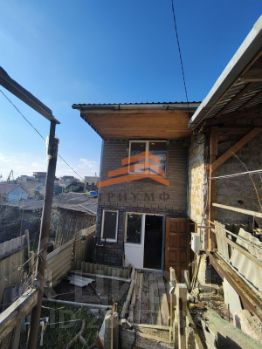 Дом в настоящее время реконструируется, готовность 80%, на первом этаже Г-образная комната площадью 39 м2, кухня - 10 м2, на втором этаже: Г-образная комната площадью 39 м2, и комната 20 м2, есть чердак и подвал, у входа - навес-оранжерея, рядом высажен виноград. В доме санузел и раковина, коммуникации заведены, установлена бочка для воды возле дома. По кадастру дом 53,5м2, как до реконструкции, обшит мягкой черепицей, внутри до половины стены обшиты ламинатной доской, везде дерево.