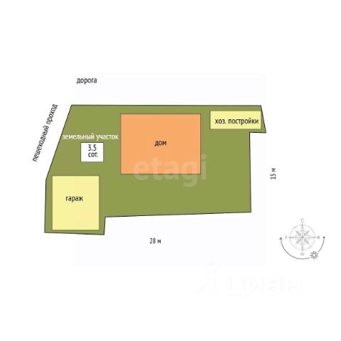 Коммуникации: электричество и вода - центральные, канализация - выгребная яма, газ центральный - по забору.