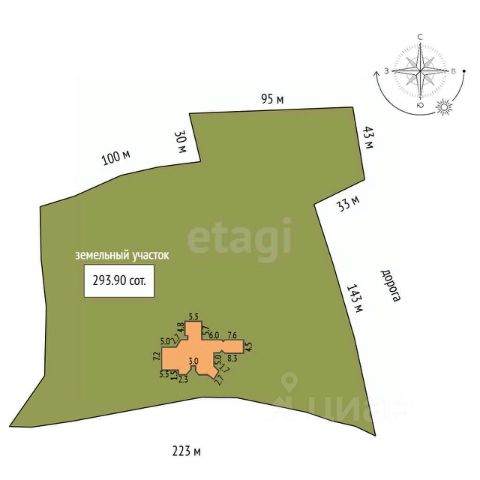 Комплекс расположен на участке 29390 м2 (аренда 49 лет в соответствии с законом РФ). Но можно выделить в более маленький участок, вокруг замка.