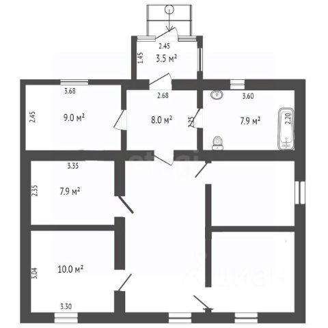 Дом состоит из 3 смежно - изолированных комнат (38.6 + 10.0 + 7.9 кв.м), коридора 6.0 кв.м., прихожей 3.5 кв.м., кухни 9.0 кв.м., и совмещённого санузла 7.9 кв.м.