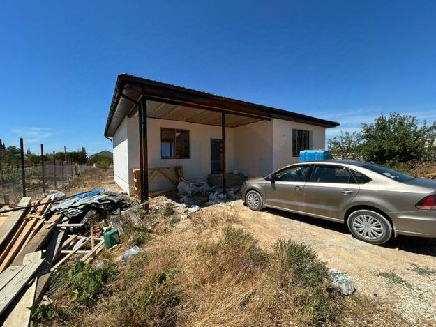 Дом построен в 2016 году, из полного ракушечного камня, на мощном железобетонном фундаменте, с цокольным этажом и колоннами, мансардным этажом под металлочерепичной крышей.