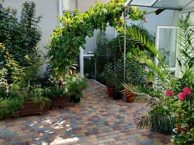 Отдельный вход и выгороженный дворик, есть бассейн, помещение для сауны.