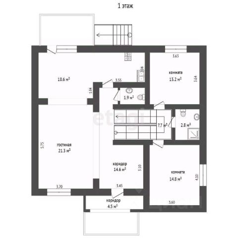 -цоколь: комната отдыха (45.1 кв.м.), кладовые (12.3+19.1 кв.м.), топочная (4.6 кв.м.), коридоры (17.5 кв.м. + 13.5 кв.м.), сан узел.