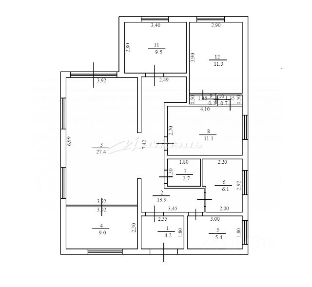 Жилой дом: 104,1/37,6/34,5 кв. м.