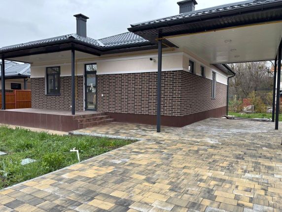 - Территория у каждого дома выложена брусчаткой, плитка на террасе и входной группе.