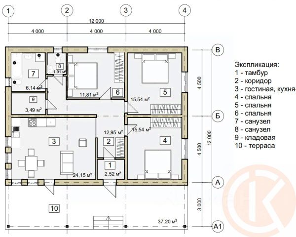 Каждая часть дома, состоит: кухня гостиная, две спальни и санузел, т.е. две полноценные двухкомнатные квартиры.