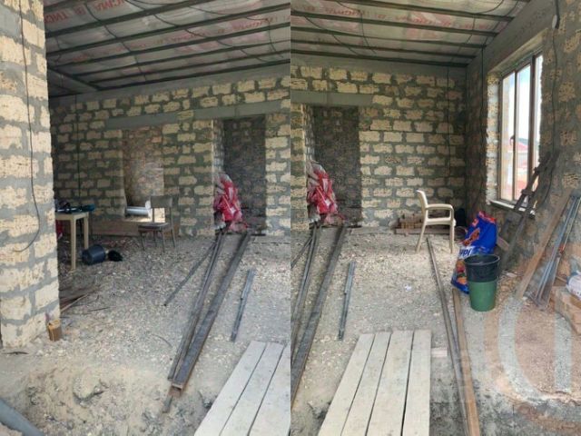 На первом этаже: кухня - столовая - 29,9кв.м. жилая комната - 25,6 кв.м., сан.узел -6,2 кв.м., котельная - 13,4 кв.м., прихожая - 13,2 кв.м., тамбур - 6,7 кв.м., коридор - 6,2 кв.м. Бетонная лестница на второй этаж.