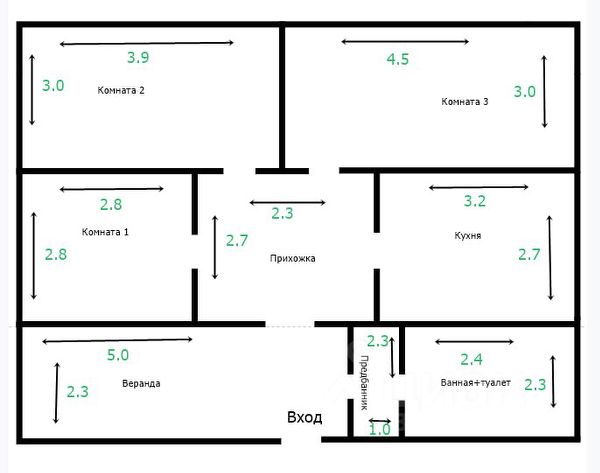 - санузел - 4,9 кв.м.